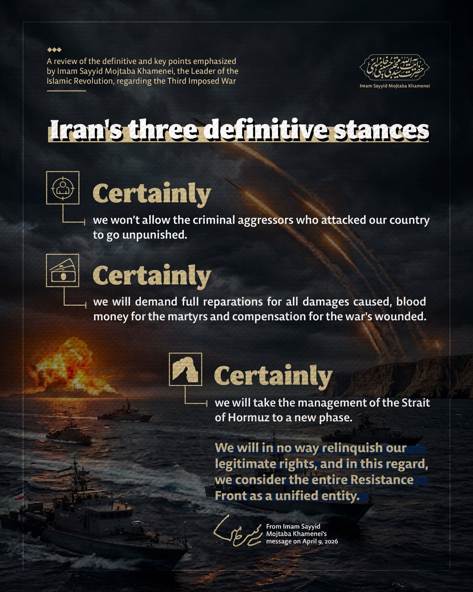이슬람 혁명의 지도자 아야톨라 세예드 모지타바 하메네이가 '제3차 강제 전쟁'에 대해 강조한 확정적이고 핵심적인 점들에 대한 검토.
