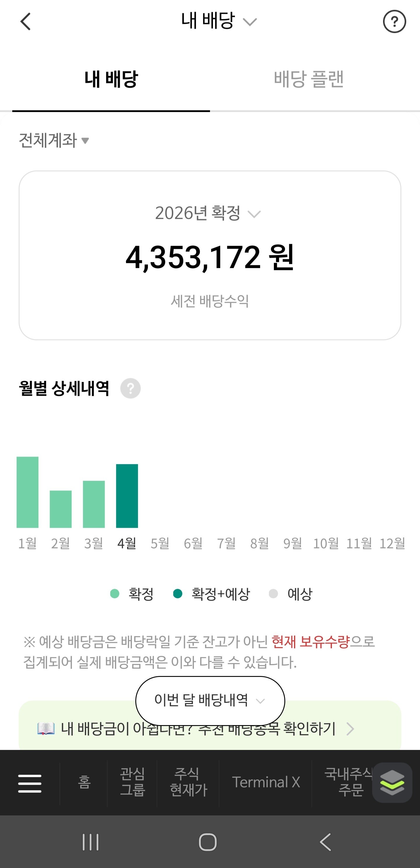 연간 배당으로 월급 3번만 더 받자가 목표였었는데 실현했고 월급 6번 더 받자를 목표로 더 열심히 모아보도록 하겠습니다.