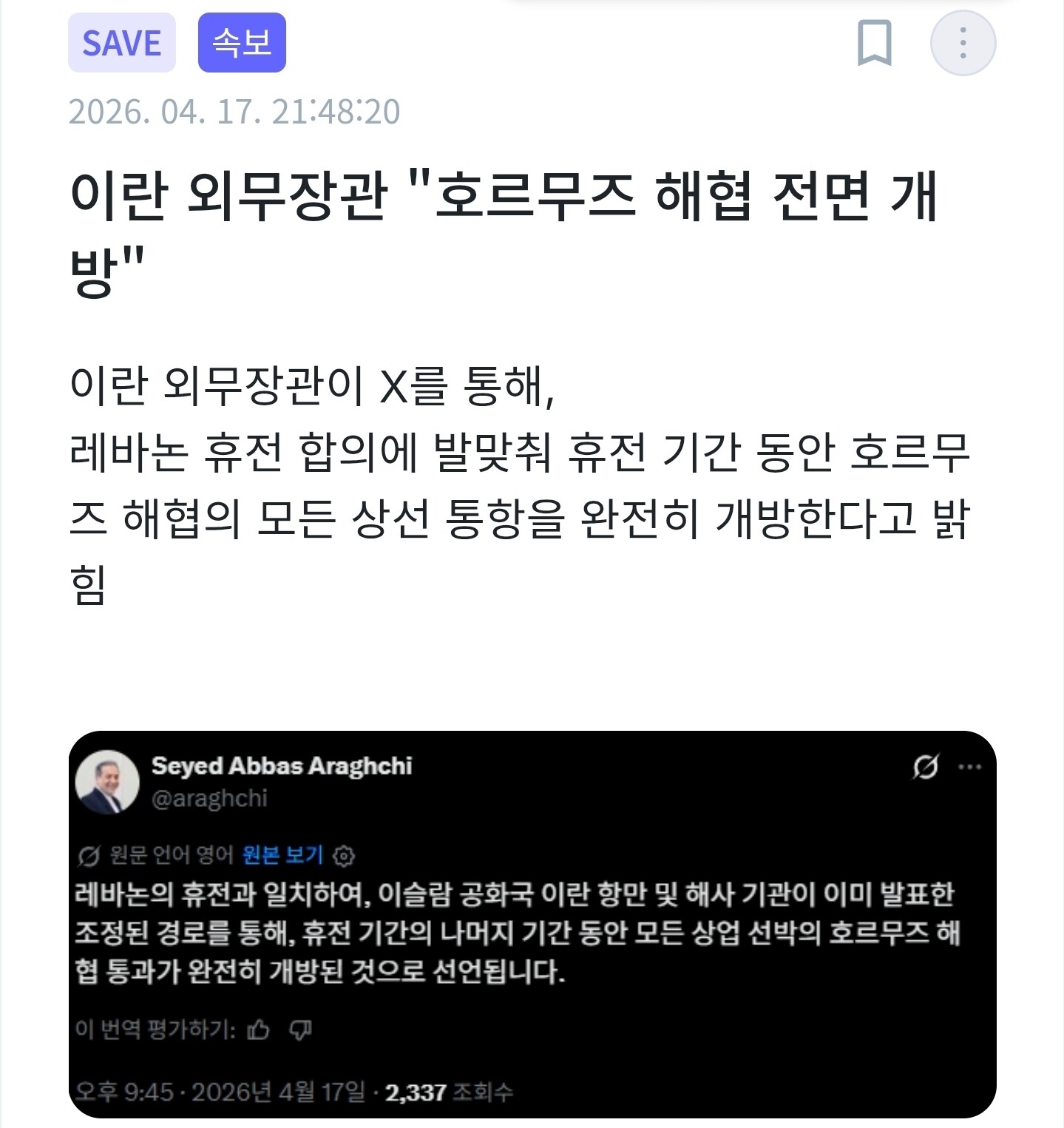그리고 동결자산 해제 모두 강경파도 만족한듯