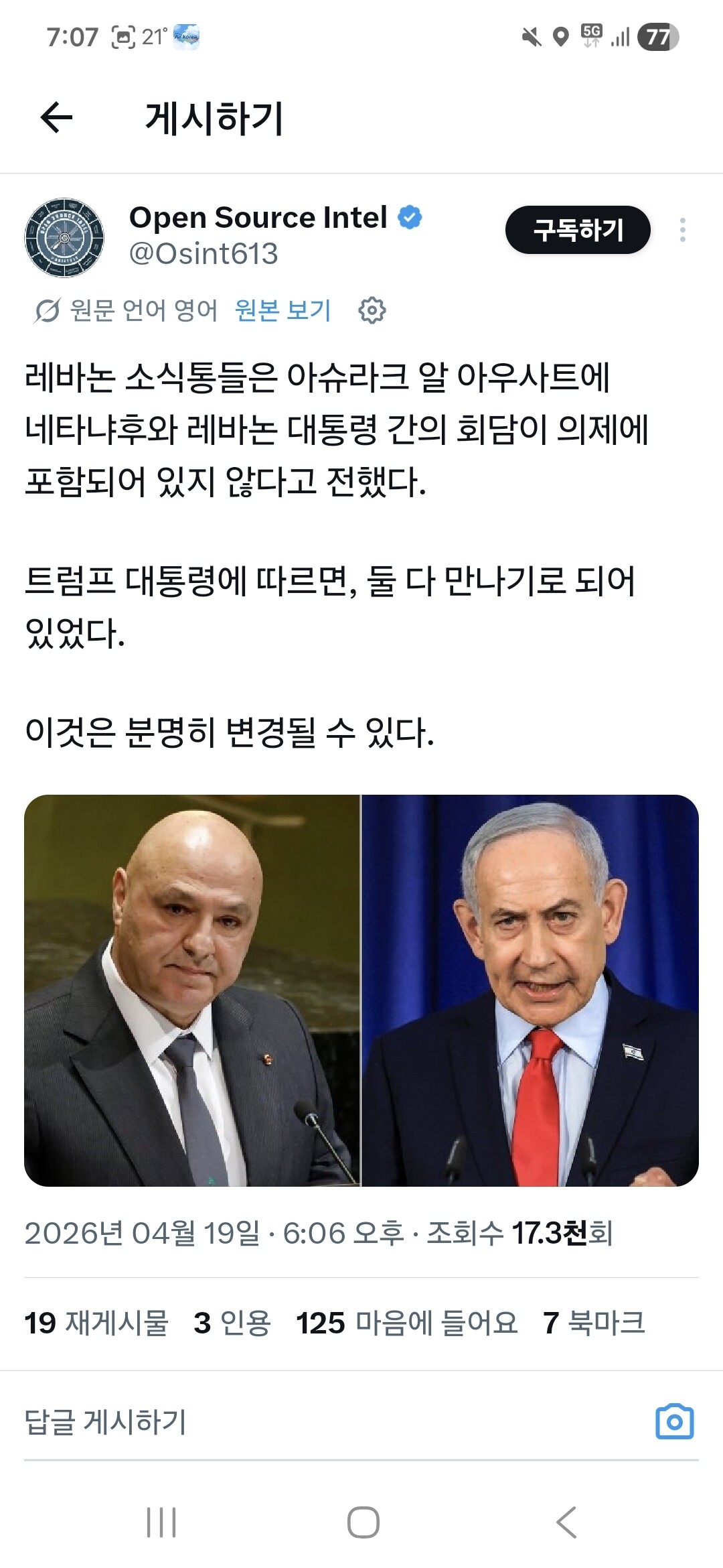 트럼프가 레바논 이스라엘 회담얘기했지만 구라임